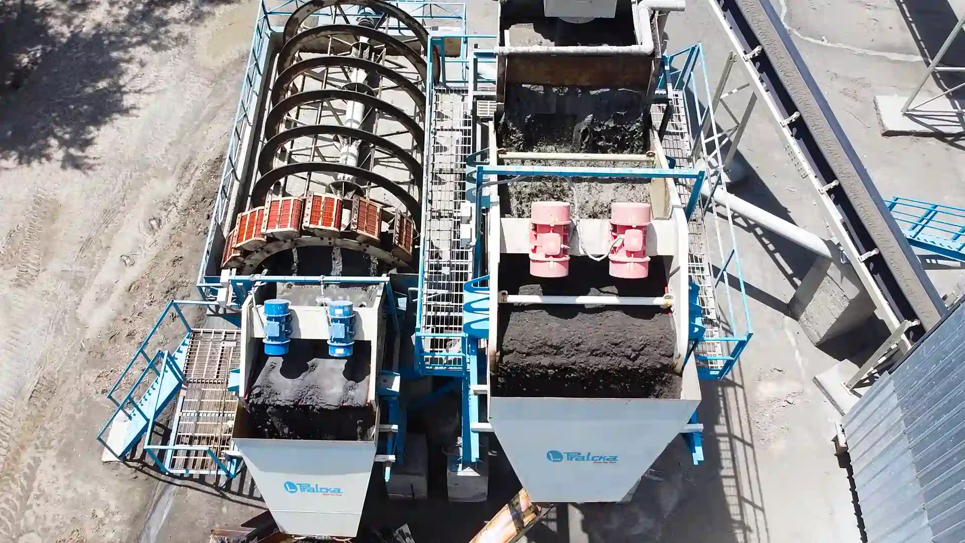 Sand and water mixture is refined in a bucket,Then water is discharged sand is dehydrated by dewatering screen.