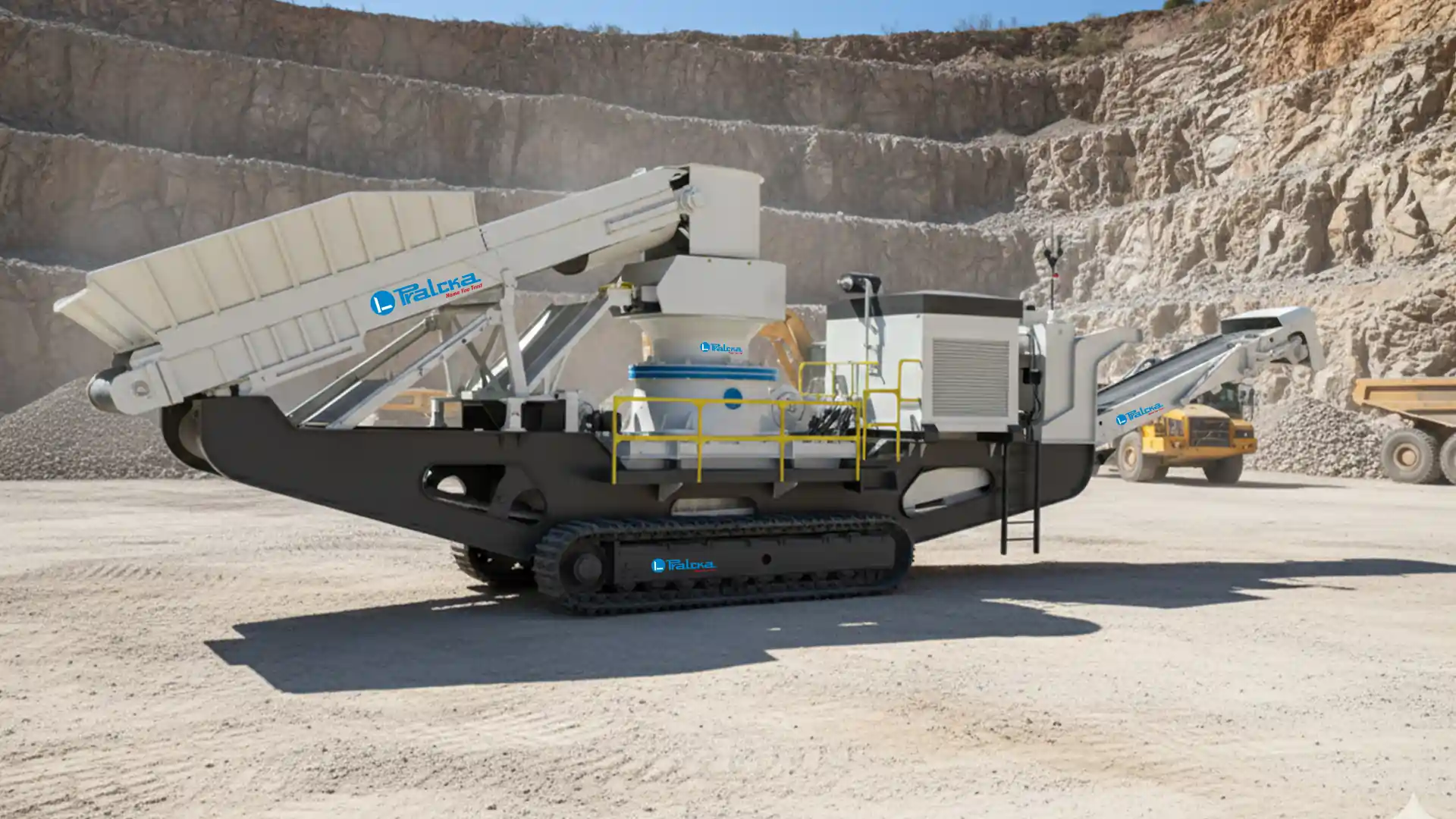 Pralcka’s Track Cone Prime is a next-generation mobile cone crusher engineered for high-capacity secondary and tertiary crushing applications. Built with cutting-edge crushing technology, robust steel construction, and intelligent automation, this track-mounted cone crusher delivers superior aggregate shaping, consistent gradation, and exceptional fuel efficiency. As a leading manufacturer of mobile crushing and screening equipment in India, Pralcka ensures that Track Cone Prime offers unmatched durability, reliability, and output efficiency—making it a top-performing choice for modern crushing operations.
